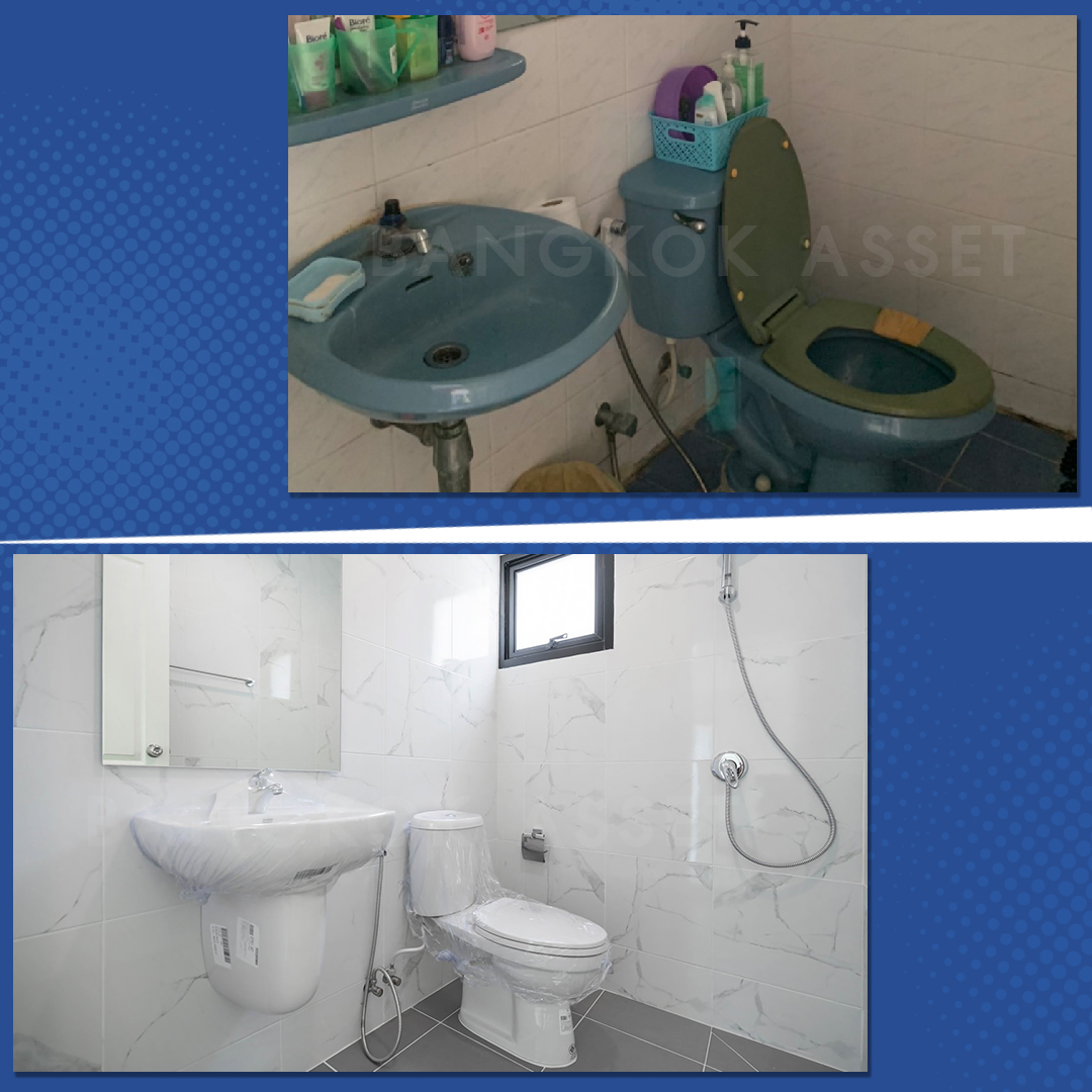ห้องน้ำเรียกว่าทำให้ใหม่ทั้งหมด ไม่ว่าจะเปลี่ยนสุขภัณฑ์ใหม่ เปลี่ยนกระเบื้องพื้น กระเบื้องผนัง และยังดูแลระบบน้ำ ระบบไฟฟ้าให้ใช้งานได้อย่างดีทั้งหมด