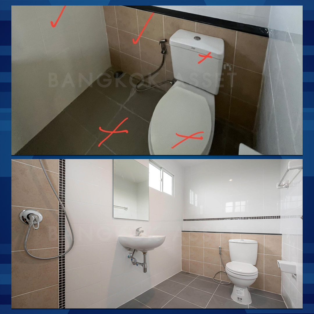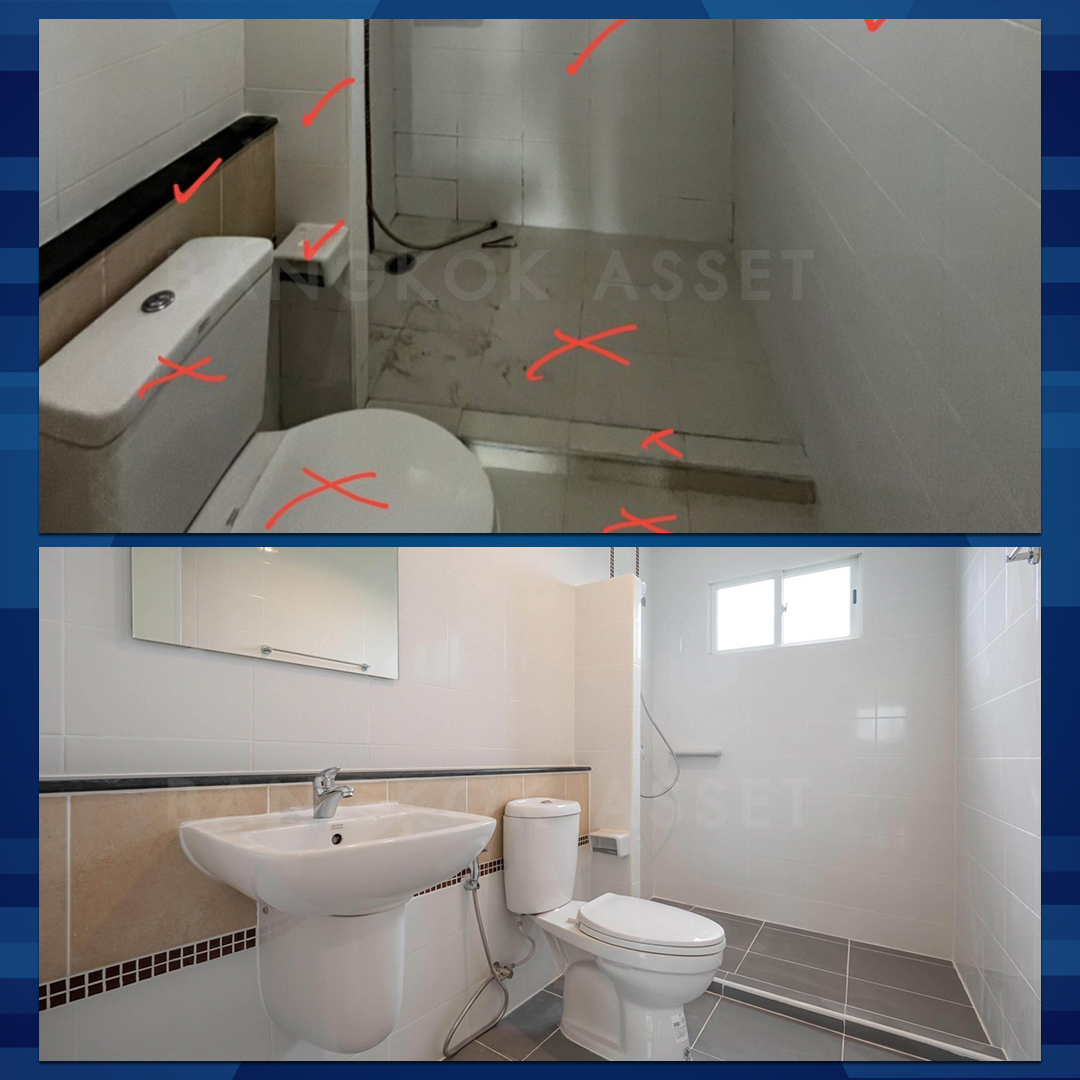 ห้องน้ำเปลี่ยนใหม่ ทั้งสุขภัณฑ์ กระเบื้อง อ่างล้างมือ ก๊อกน้ำ ฝักบัว ส่วนเรื่องของระบบน้ำ ระบบไฟฟ้าเราก็ตรวจสอบดูแลให้พร้อมใช้งานได้อย่างดีอีกด้วยครับ
