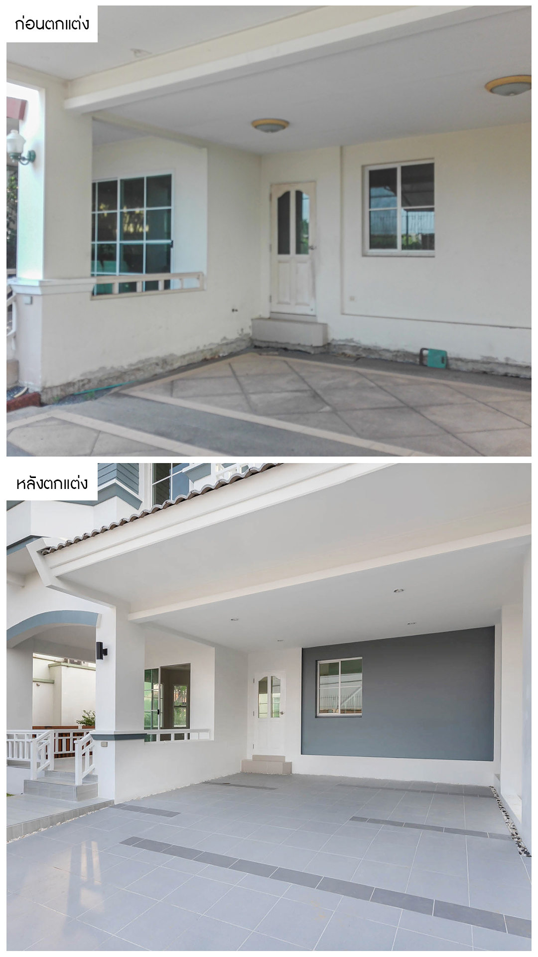 จากบ้านหลังเก่ามีสีซีดจาง เราได้ทำการรีโนเวท ตกแต่งใหม่ทั้งหลัง