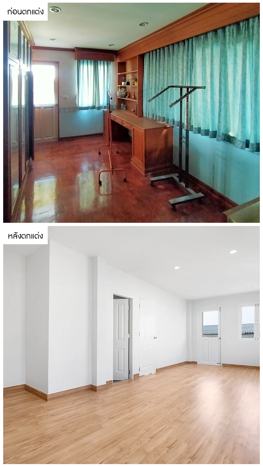 พร้อมเปลี่ยนโทนสีของห้องนอนเป็นโทนขาวสว่างทำให้ห้องดูน่าพักผ่อนมากยิ่งขึ้น