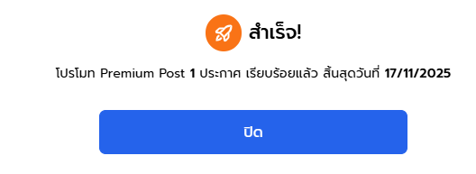 ดันประกาศขึ้นเป็นลำดับต้นๆ ต่อจาก Premium Post | - | 10 เครดิต |