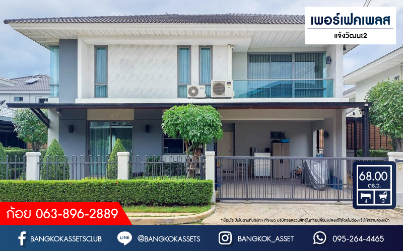 ขาย - *****บ้านเดี่ยวมือสองย่านแจ้งวัฒนะ ม.เพอร์เฟคเพลส แจ้งวัฒนะ2 หลังมุม เนื้อที่กว้าง 68 ตร.ว. ฟังก์ชัน 4 ห้องนอน 3 ห้องน้ำ ที่จอดรถ 2 คัน สภาพใหม่เอี่ยม ตกแต่งครบพร้อมเข้าอยู่ได้ทันที ตั้งบนสุดยอดทำเล การเดินทางสะดวกสบาย เชื่อมต่อถนนแจ้งวัฒนะ, ถนนชัยพฤกษ์, ถนนติวานนท์ และจุดขึ้นทางด่วน "ศรีสมาน" จองเลยวันนี้!