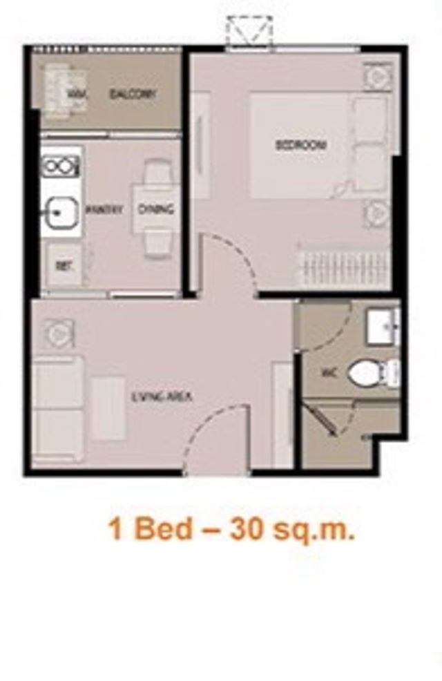 ชั้น 12 เนื้อที่ 30.34 ตรม. 1 ห้องนอน 1 ห้องน้ำ ระเบียงทิศตะวันออกเฉียงเหนือ วิวโล่งส่วนตัว