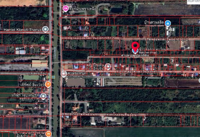 ขาย - ที่ดินเปล่า ซอยคลองหกตะวันออก 98/1 ถ.รังสิต-นครนายก คลองหลวง ปทุมธานี