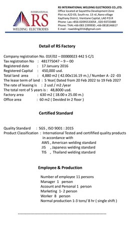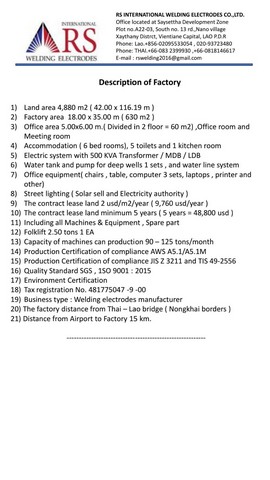 Welding Electrode Manufacturing Facility Located in Saysettha Industrial Zone, Vientiane Capital, Lao P.D.R.