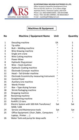 -ขายโรงงานผลิตลวดเชื่อม ในเขตนิคมอุตสาหกรรม ไชยเชษฐา นครหลวงเวียงจันทน์ ประเทศลาว