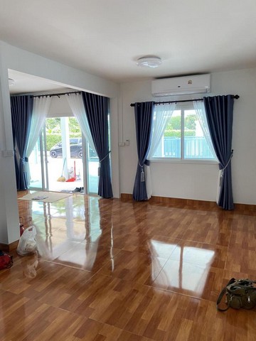มีแอร์ 7 เครื่อง และชุดผ้าม่านทั้งหลัง มีสวนหินหน้าบ้าน และพื้นที่สวนหลังบ้าน