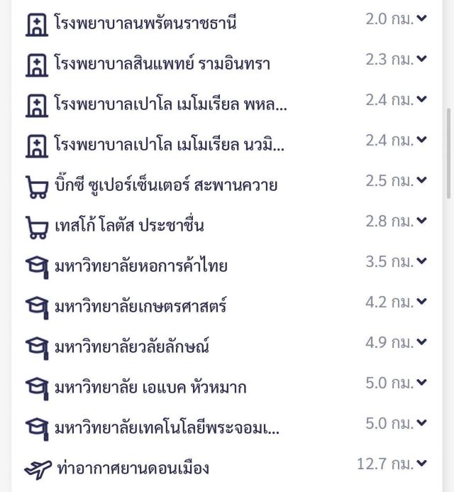 -สถาบันการบินพลเรือน ม.ราชภัฎจันทรเกษม โรงพยาบาลนพรัตน์ราชธานี โรงพยาบาลสินแพทย์รามอินทรา