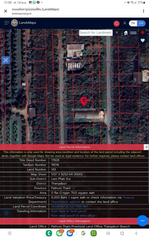 ขาย - ขายที่ดินคลองเก้าธัญบุรี 140 ตรว(แบ่งได้) ติดถนนลาดยางสาธารณะ ซ. รพ.ส่งเสริมสุขภาพลำผักกูด จ.ปทุมธานี