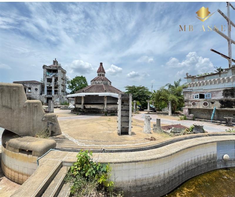 - ที่ดินถมแล้ว มีรั้วคอนกรีตล้อมรอบ พร้อมสระว่ายน้ำ และคฤหาสน์ 3 ชั้น