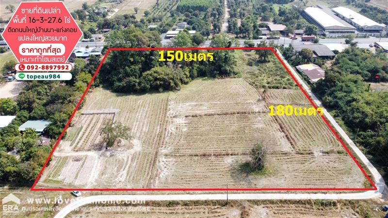 - ที่ดินเปล่า พื้นที่ 16-3-27.6 ไร่ ติดถนนใหญ่บ้านนา-แก่งคอย ต.เขาเพิ่ม อ.บ้านนา จ.นครนายก