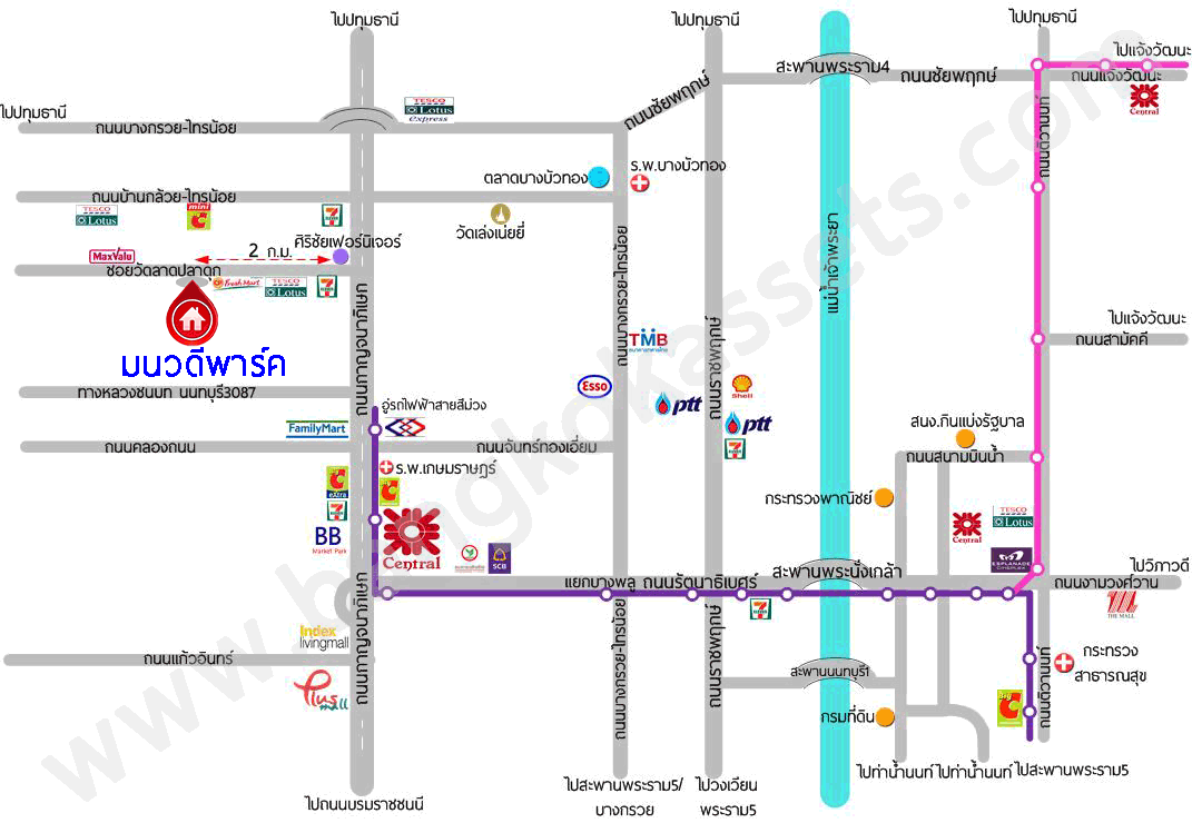 - ใกล้จุดขึ้น-ลงรถตู้ วิ่งต้นทางจาก หมู่บ้านมนวดีพาร์ค ปลายทางที่ เซ็นทรัลเวสต์เกต