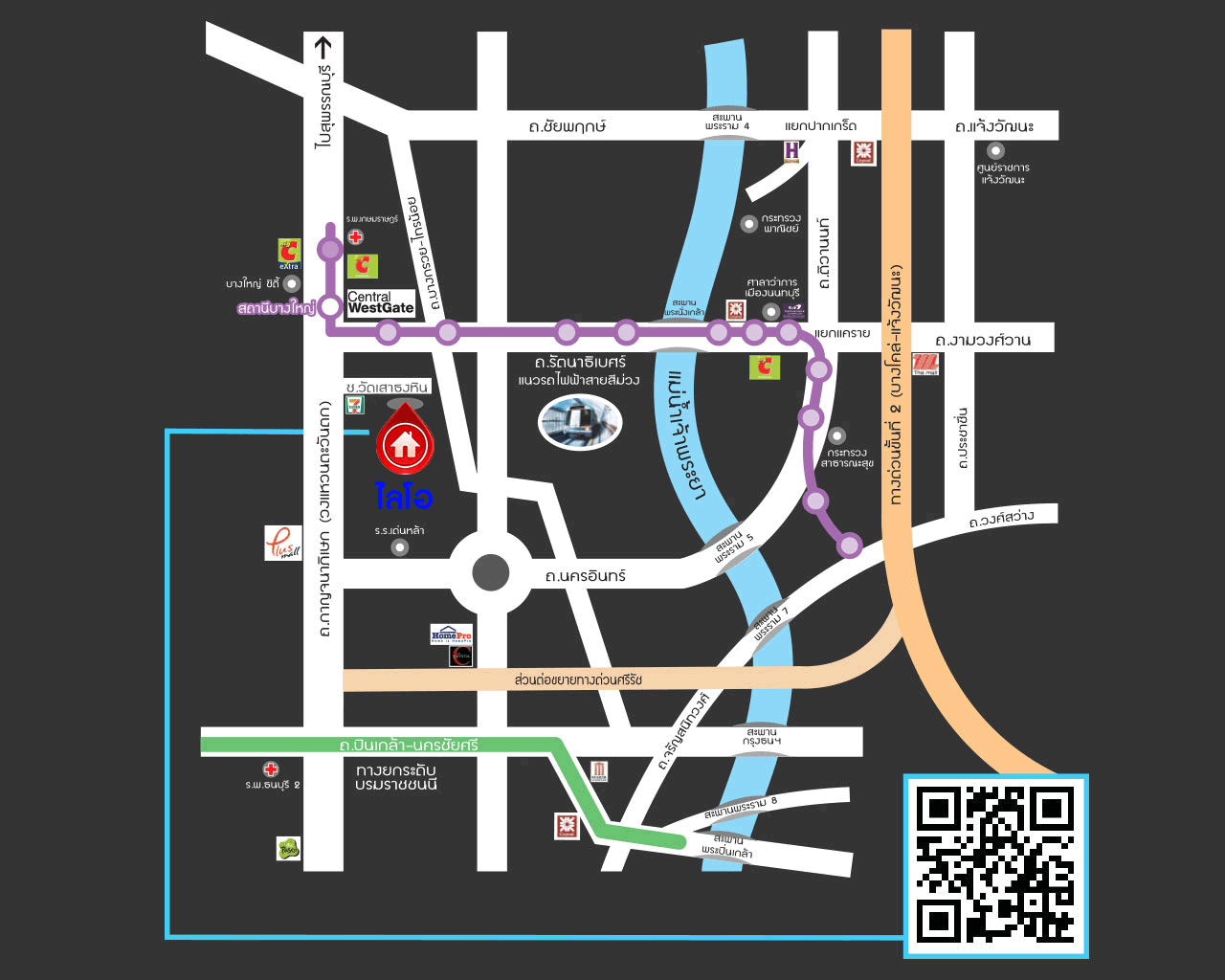 - ใกล้ห้างสรรพสินค้าเซ็นทรัลเวสต์เกต ,พลัสมอลล์ ,อิเกีย บางใหญ่ ,บิ๊กซี บางใหญ่
