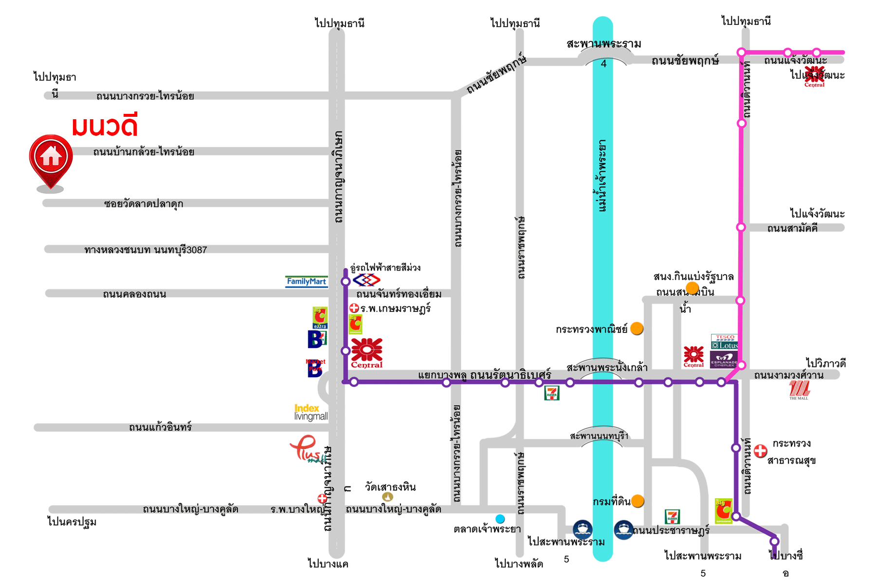 - ใกล้จุดขึ้น-ลงรถตู้ วิ่งต้นทางจาก หมู่บ้านมนวดีพาร์ค ปลายทางที่ เซ็นทรัลเวสต์เกต