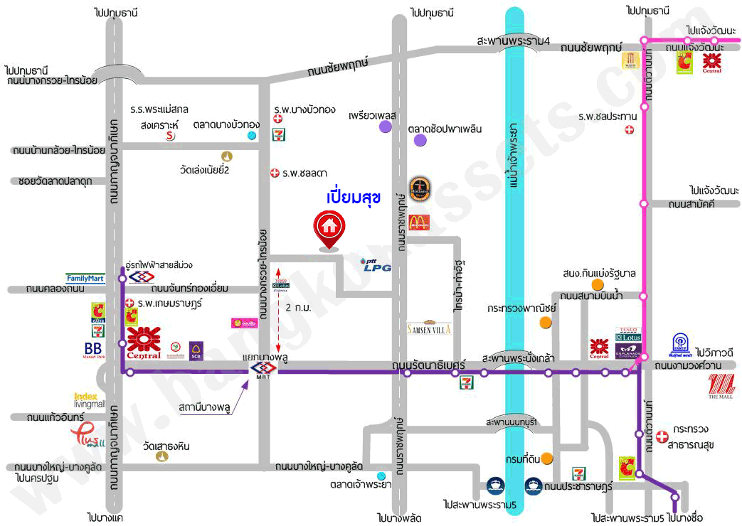 - ใกล้ห้างสรรพสินค้าเซนทรัลเวสต์เกต ,โฮมโปร บางใหญ่ ,บิ๊กซี ,โลตัส บางบัวทอง