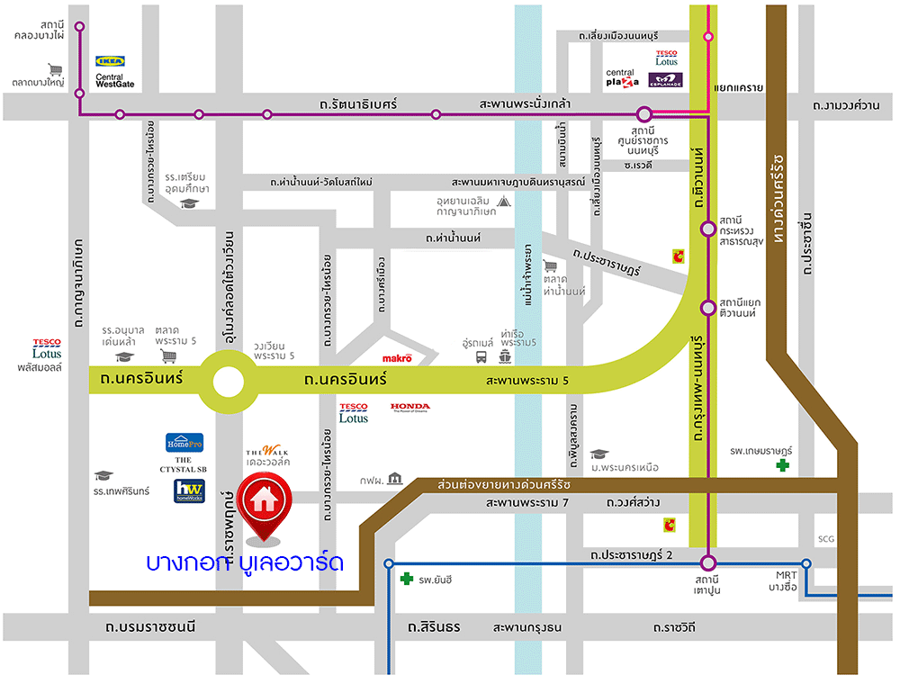 - ใกล้ห้างสรรพสินค้าเดอะคริสตัล เอส.บี. ราชพฤกษ์ ,เดอะวอล์ค ราชพฤกษ์ ,แม็คโคร พระราม5 ,โลตัส นครอินทร์ ,โฮมโปร ราชพฤกษ์