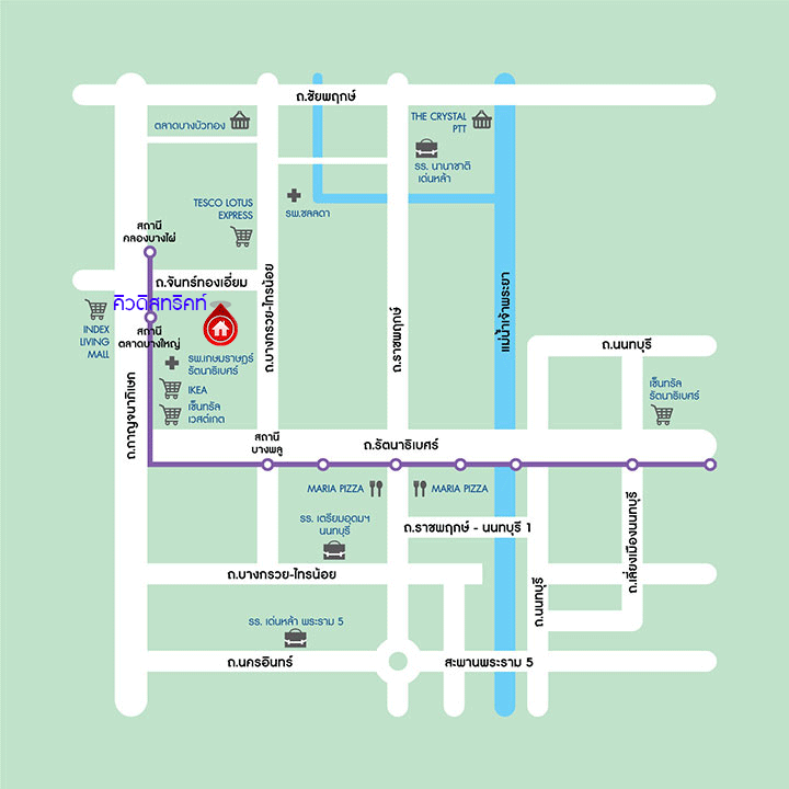 - ใกล้โรงพยาบาลเกษมราษฏร์ รัตนาธิเบศร์ ,โรงพยาบาลบางบัวทอง ,โรงพยาบาลชลลดา
