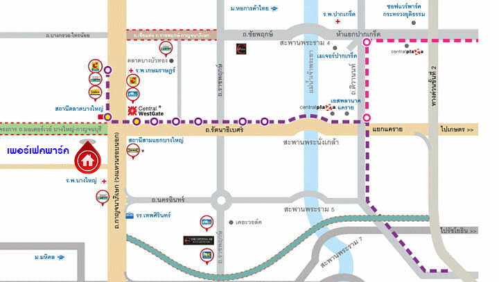 - ใกล้ห้างสรรพสินค้าเซ็นทรัลเวสต์เกต ,เดอะวอล์ค ราชพฤกษ์ ,โฮมโปร ,พลัสมอลล์ บางใหญ่