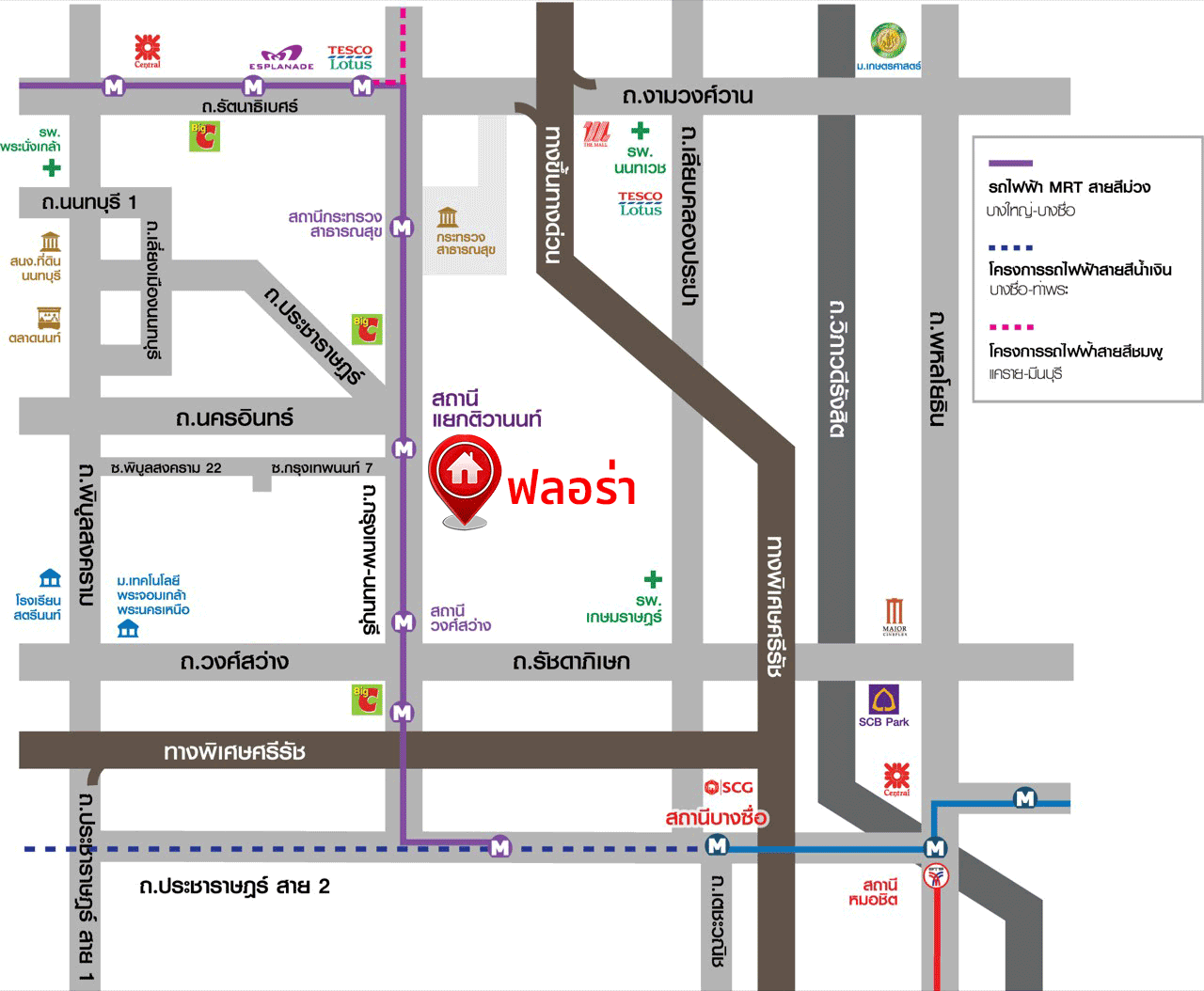 - ใกล้ห้างสรรพสินค้าเกตเวย์บางซื่อ ,บิ๊กซีวงศ์สว่าง ,บิ๊กซีติวานนท์,เมเจอร์ท่าน้ำนนท์ ,โลตัส แคราย