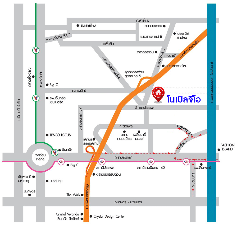 - เข้าออก-ได้หลายเส้นทาง ได้แก่ ถนนสุขาภิบาล5, ถนนวัชรพล,