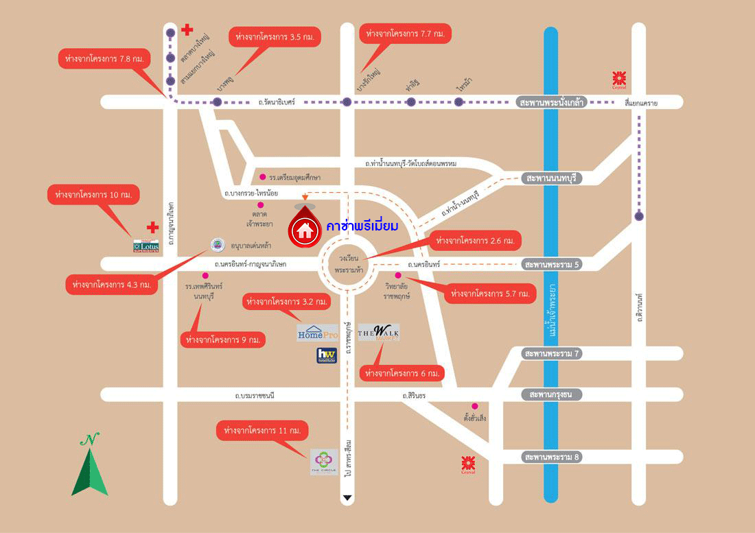- ใกล้ห้างสรรพสินค้าเซ็นทรัลเวสต์เกต ,เดอะวอล์ค ราชพฤกษ์ ,โฮมโปร ,โฮมเวิร์ค ราชพฤกษ์