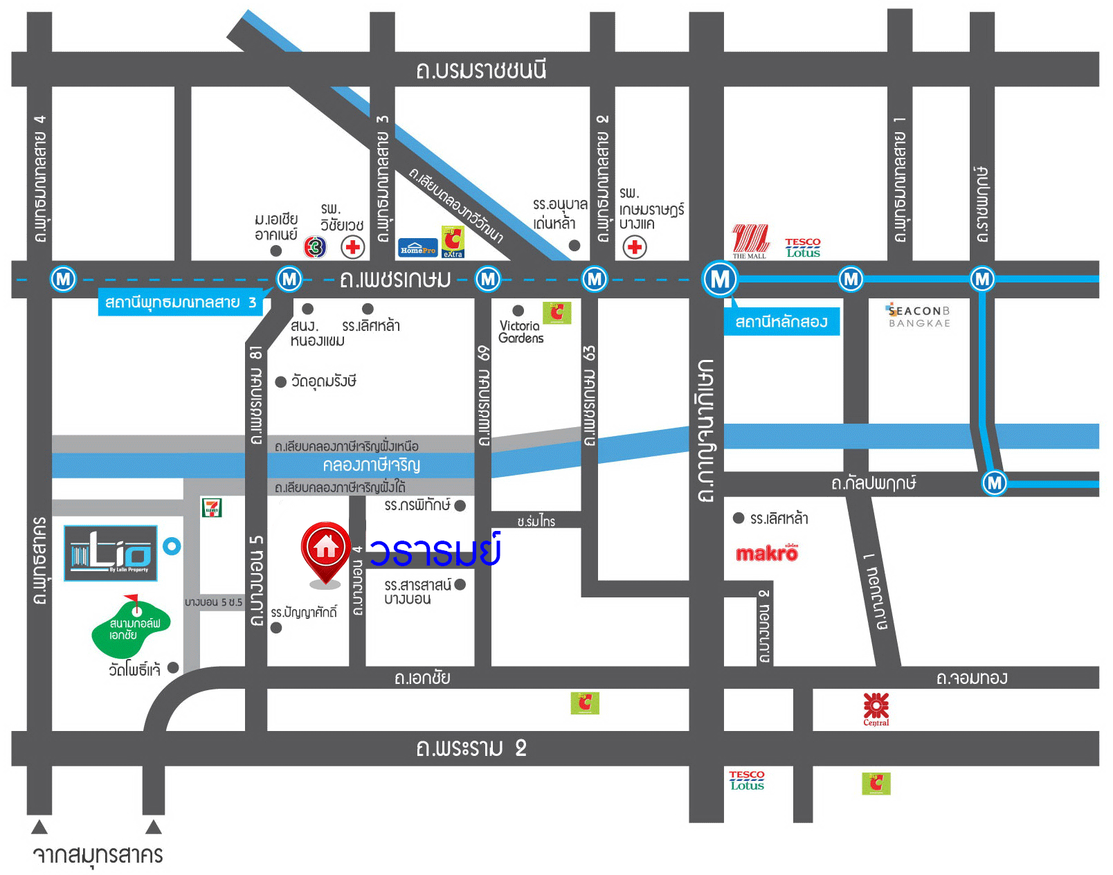 - ใกล้ห้างสรรพสินค้าเซ็นทรัลพระราม2, บิ๊กซี เพชรเกษม ,เดอะมอลล์ บางแค,ซีคอน บางแค ,วิคตอเรีย การ์เด้น เพชรเกษม ,เดอะทรี บางบอน , บิ๊กซี เอ็กซ์ตร้า เพชรเกษม 2 ,โฮมโปร ,สำเพ็ง 2