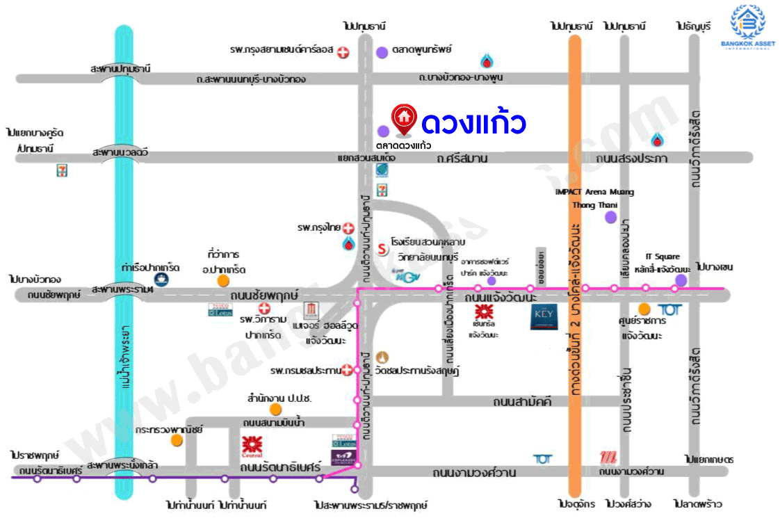 - ใกล้โรงพยาบาลกรุงไทย, โรงพยาบาลมงกุฏวัฒนะ, โรงพยาบาลสยามเซนต์คาร์ลอส