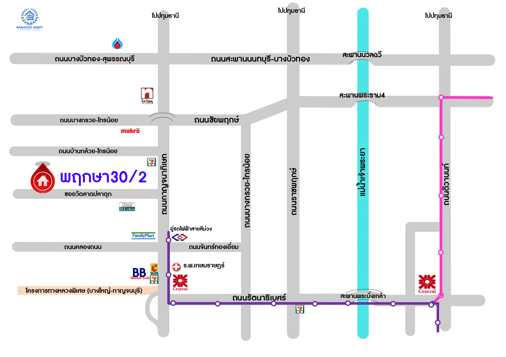 - ใกล้ห้างสรรพสินค้าเซ็นทรัลเวสท์เกต / BigC / แม็คโคร บางบัวทอง