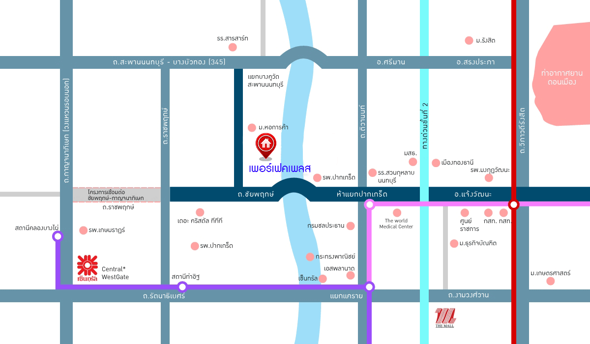 - ใกล้รถไฟฟ้าสายรถไฟฟ้า สายสีชมพู "สถานีสถานีแยกปากเกร็ด"