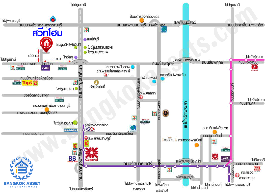 - ใกล้โรงเรียนบางบัวทอง, โรงเรียนพระแม่สกลสงเคราะห์, โรงเรียนสารสาสน์วิเทศบางบัวทอง