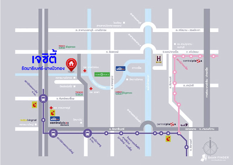 - ใกล้ห้างสรรพสินค้าเซ็นทรัลพลาซา เวสต์เกต, Lotus บางบัวทอง, Big C รัตนาธิเบศร์