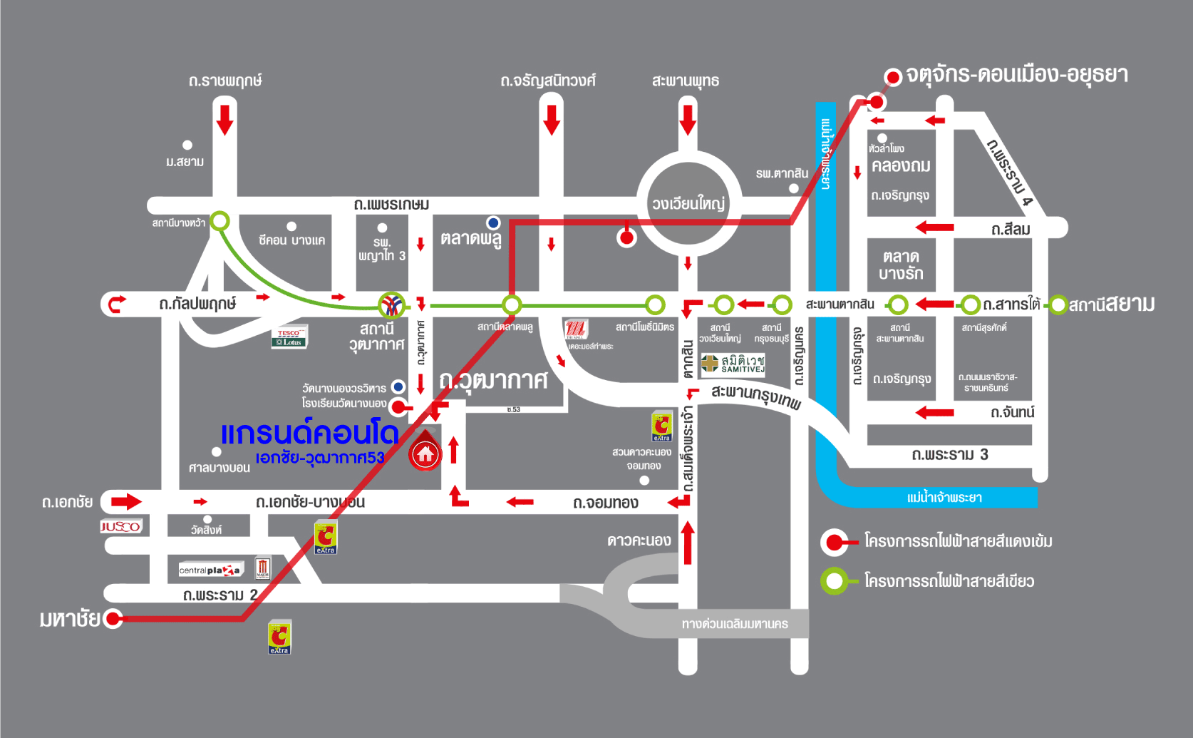 - โครงการตั้งอยู่บนถนนสายหลัก ได้แก่ ถนนวุฒากาศ
