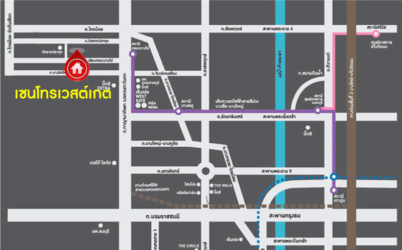 - ใกล้ ห้างสรรพสินค้าเซ็นทรัลเวสต์เกต, เดอะสแควร์ บางใหญ่