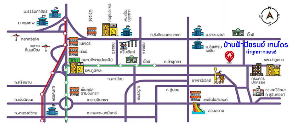 - โครงการตั้งอยู่บนถนนสายหลัก ถนนลำลูกกา