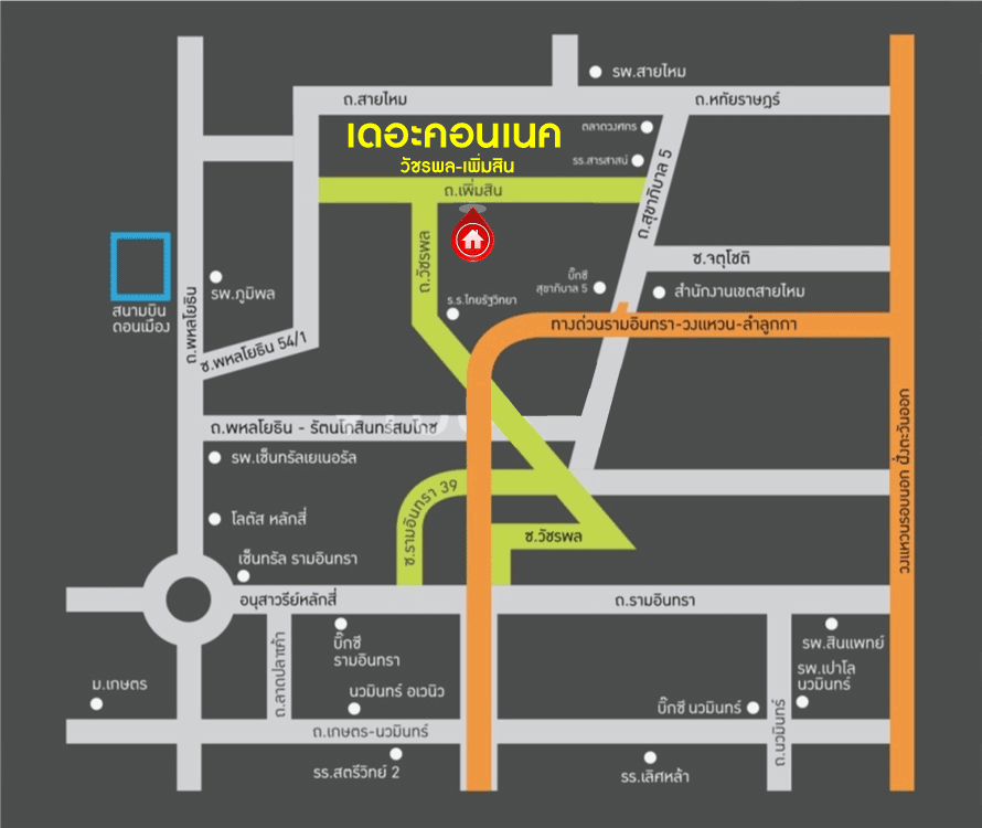 - โครงการตั้งอยู่บนถนนสายหลัก ได้แก่ ถนนเพิ่มสิน