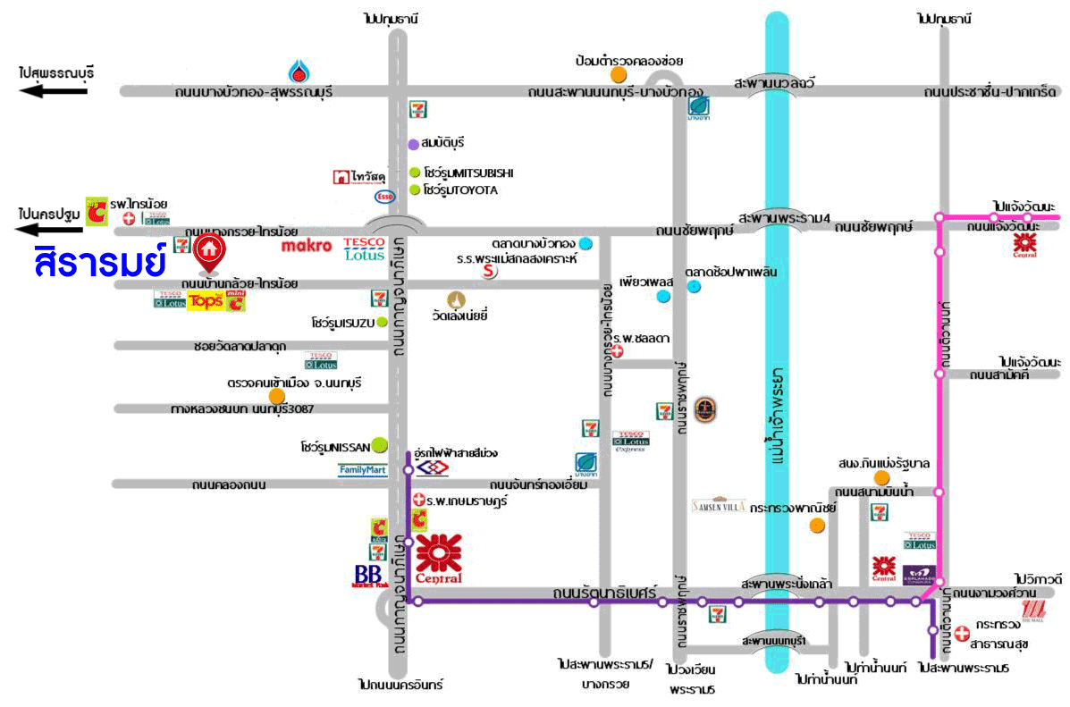 - ใกล้โรงพยาบาลเกษมราษฎร์ รัตนาธิเบศร์ ,โรงพยาบาลบางบัวทอง ,โรงพยาบาลชลลดา