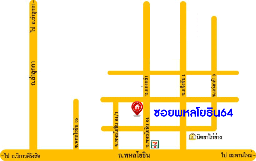 - โครงการตั้งอยู่บนถนนสายหลัก ถนนพหลโยธิน ถนนซอย ซอย 64