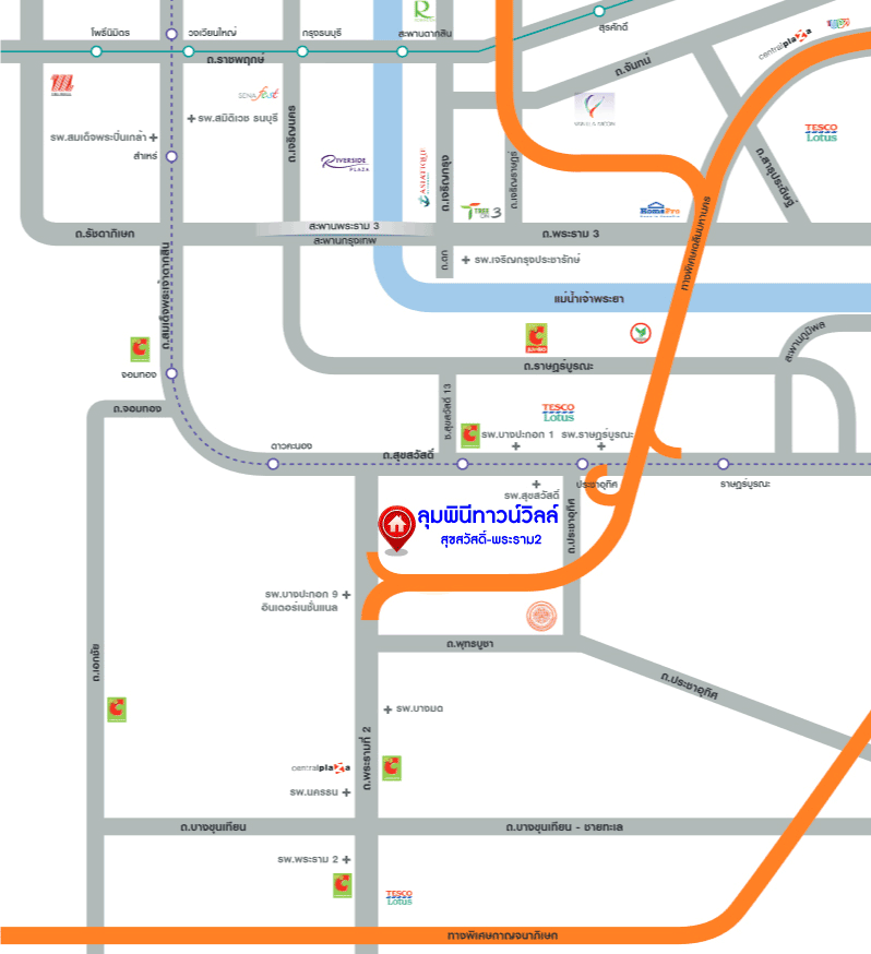 - ใกล้ ห้างสรรพสินค้าเซ็นทรัลพระราม 2, โฮมโปร พระราม2, โลตัส พระราม2, บิ๊กซี พระราม2