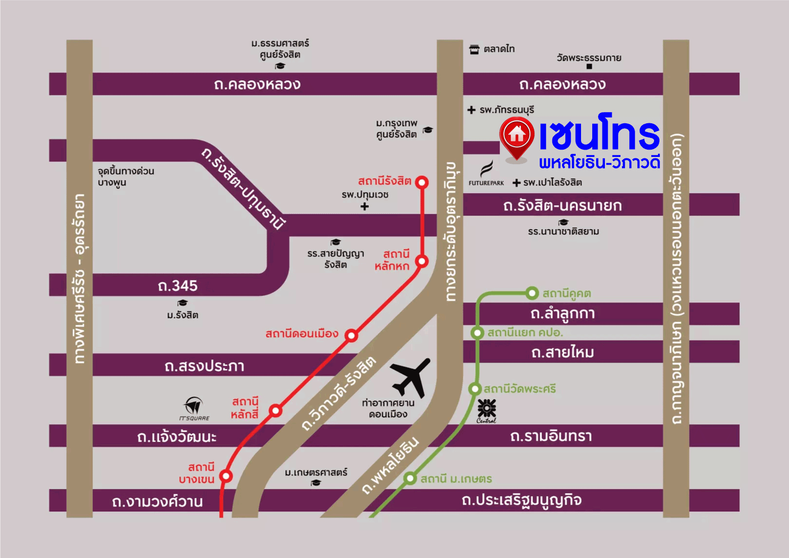 - โครงการตั้งอยู่บนถนนสายหลัก ถนนพหลโยธิน