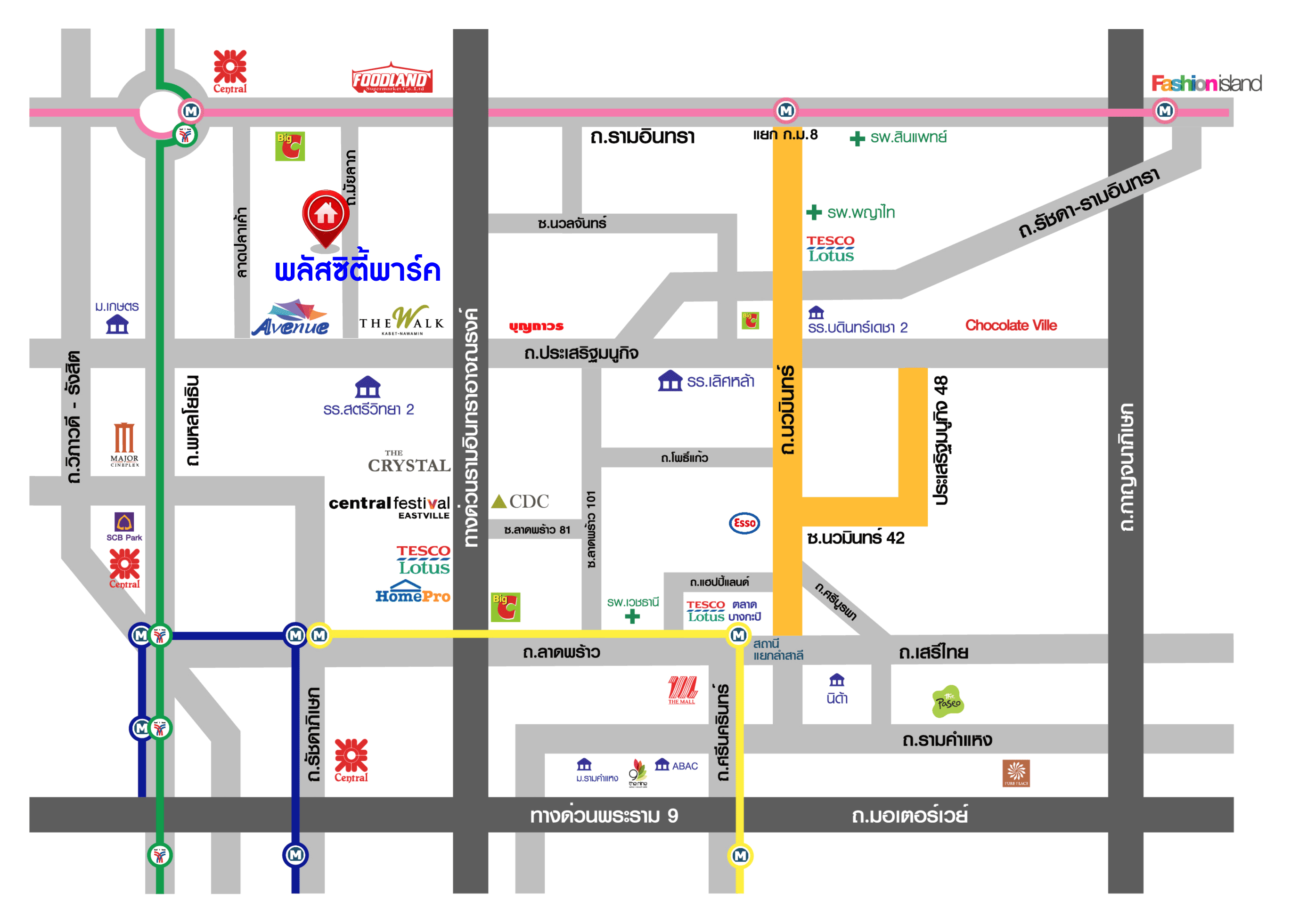 - โครงการตั้งอยู่บนถนนสายหลัก ได้แก่ ถนนประเสริฐมนูกิจ ถนนซอย ประเสริฐมนูกิจ 29