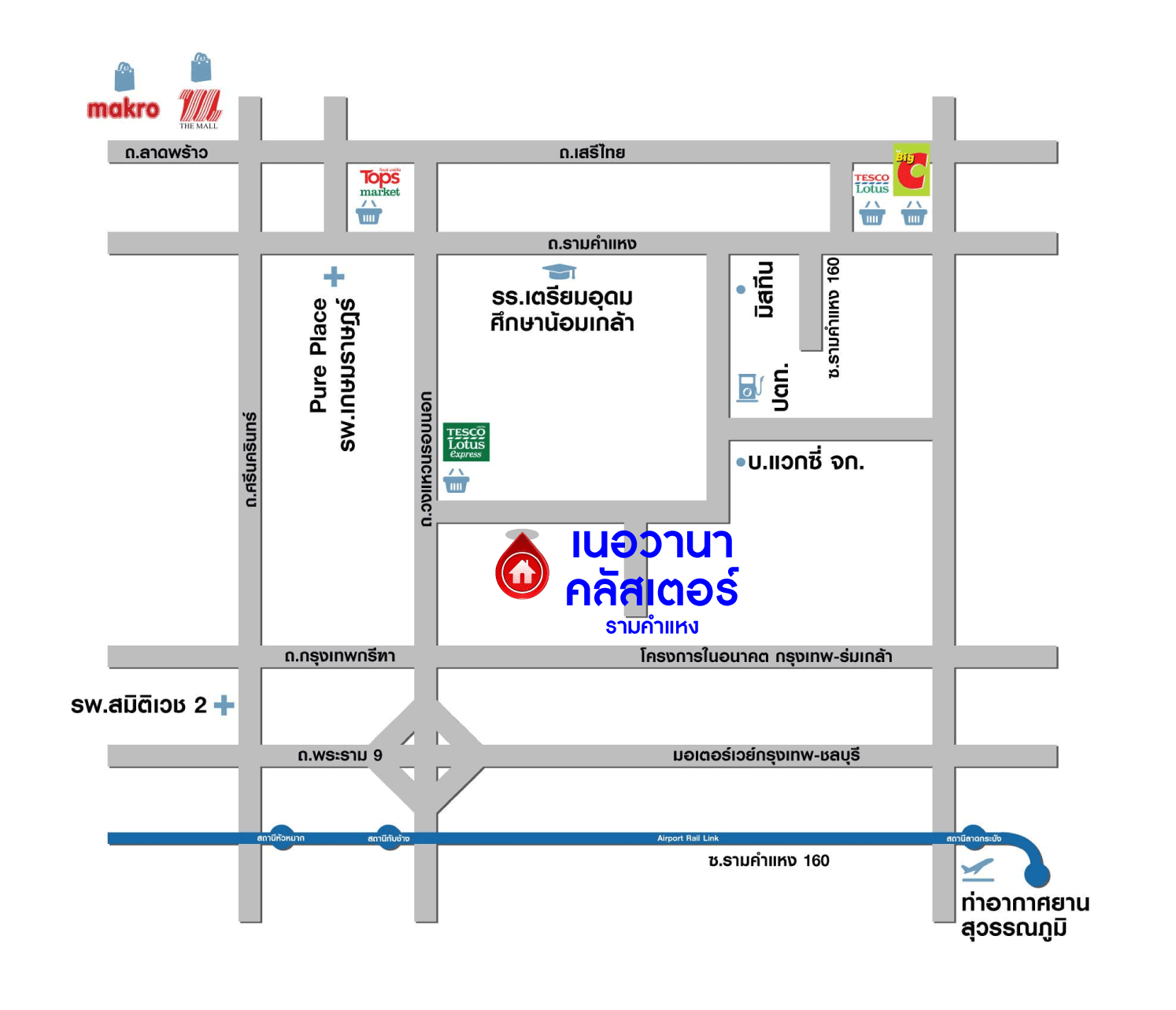 - ใกล้ห้างสรรพสินค้าเดอะมอลล์ รามคำแหง, Makro ลาดพร้าว, Paseo สุขาภิบาล