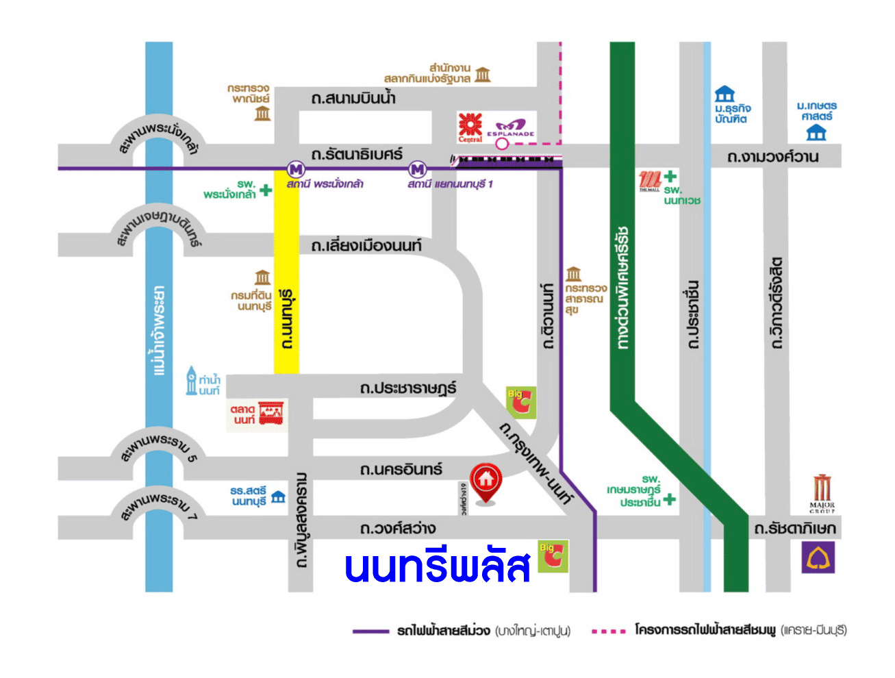 - ใกล้ห้างสรรพสินค้าแม็คโคร นครอินทร์