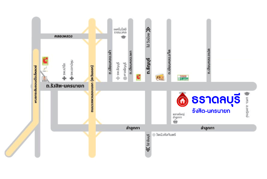 - ใกล้โรงพยาบาลศูนย์มหาวชิราลงกรณ์ ธัญบุรี, โรงพยาบาลธัญบุรี, โรงพยาบาลคลองหลวง