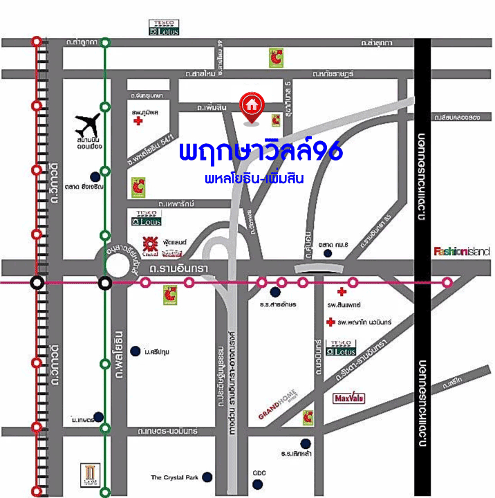- ใกล้โรงพยาบาลภูมิพล, โรงพยาบาลสายไหม, โรงพยาบาลเยนเนรัล