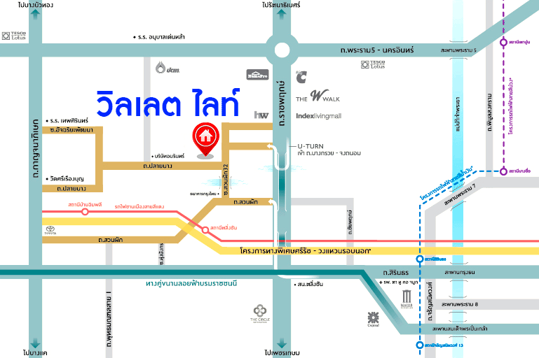 - ใกล้ห้างสรรพสินค้าเดอะวอล์ค ราชพฤกษ์, โฮมเวิร์ค ราชพฤกษ์, เดอะคริสตัล เอสบี ราชพฤกษ์