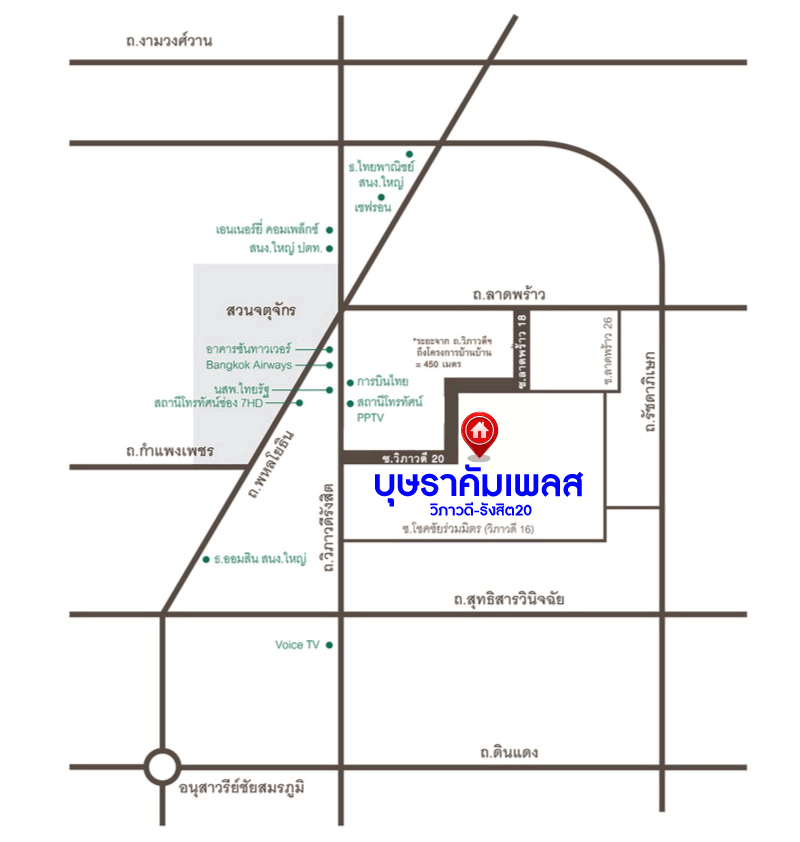 - โครงการตั้งอยู่บนถนนสายหลัก ถนนวิภาวดีรังสิต ถนนซอย วิภาวดี-รังสิต 20 แยก 18