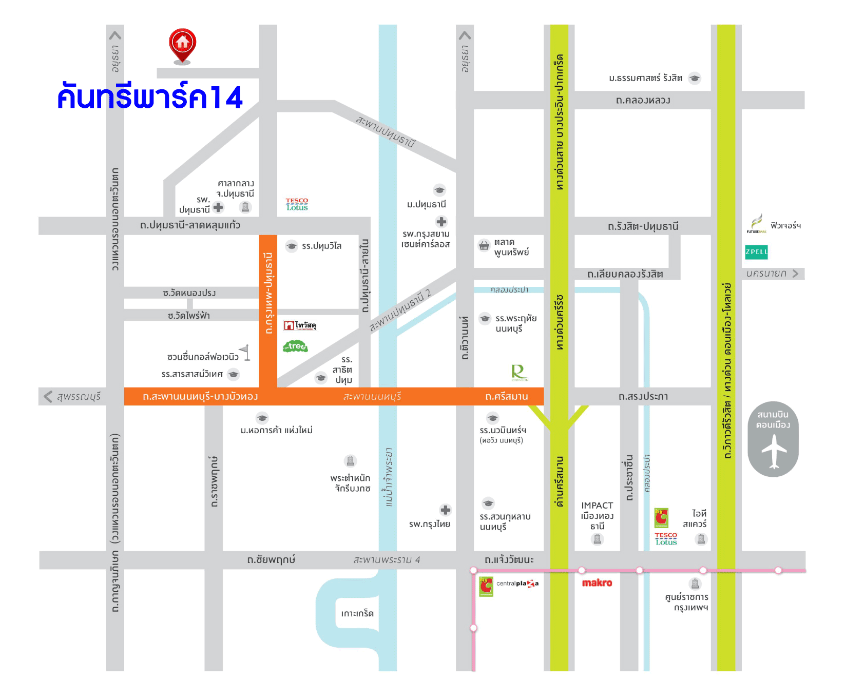 - ใกล้ห้างสรรพสินค้าฟิวเจอร์พาร์ค รังสิต, โลตัส ปทุมธานี, แม็คโคร ปทุมธานี