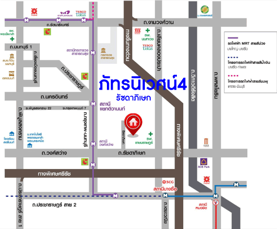 - ใกล้ห้างสรรพสินค้าบิ๊กซี วงศ์สว่าง, เมเจอร์ นนทบุรี, โลตัส นครอินทร์, แม็คโคร นนทบุรี