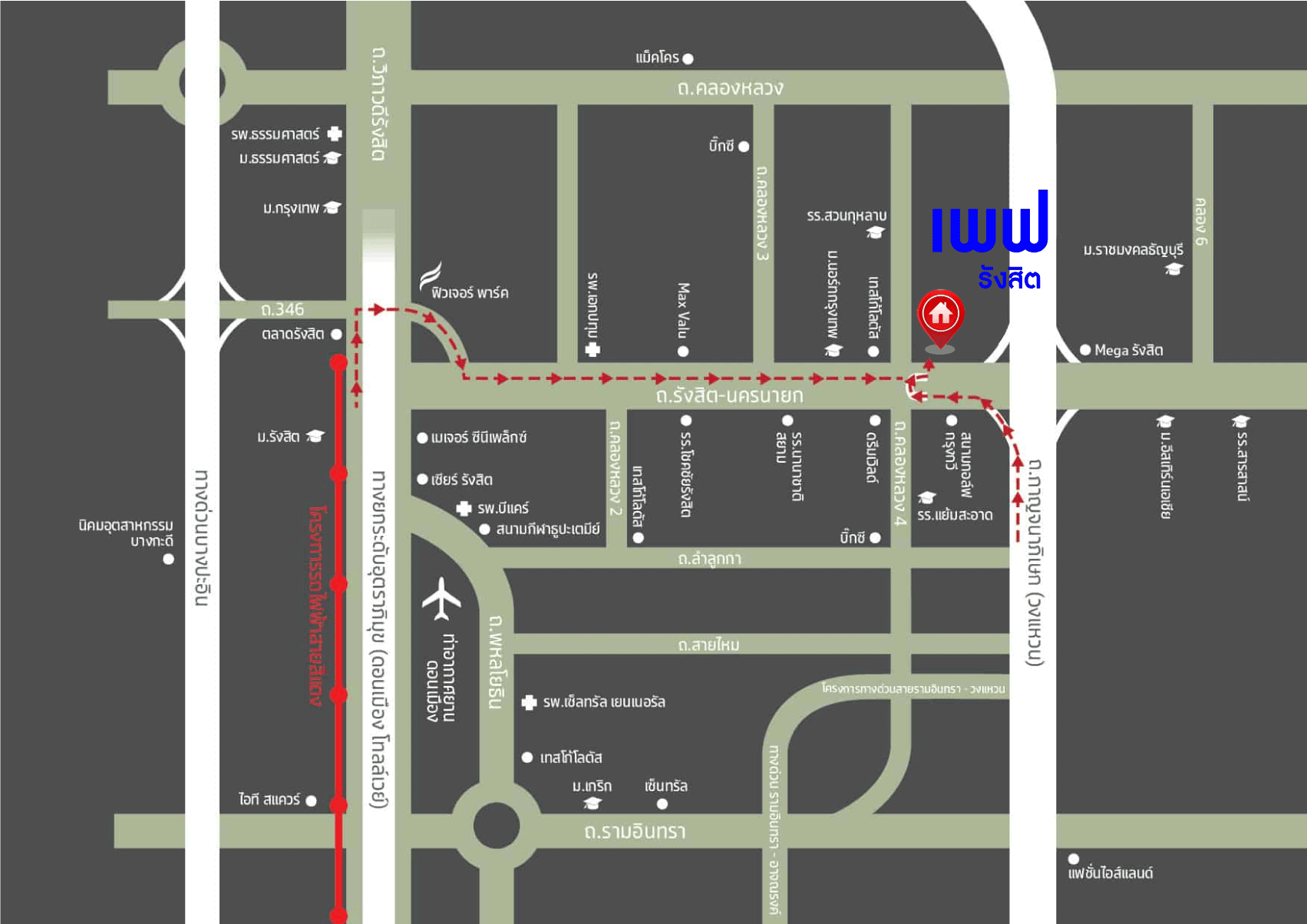 - โครงการตั้งอยู่บนถนนสายหลัก ถนนรังสิต-นครนายก