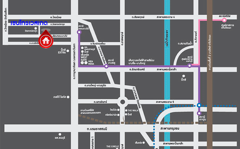 - ใกล้ห้างสรรพสินค้าเซ็นทรัลเวสต์เกต, The Square บางใหญ่, ไทวัสดุ บางบัวทอง, Makro บางบัวทอง